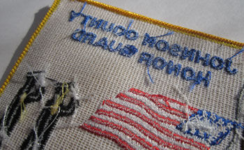 | Woven patches are made of thread only, stitched in a continuous design and achieve finer detail in both the design and text of the patch. This results in a patch that has a smooth appearance with no raised texture. | |